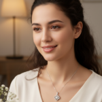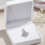 Elegant Focal Point: The pendant hangs from a delicate chain, positioning the dazzling centerpiece perfectly at the hollow of the neck to draw focus upward and enhance your overall presentation.